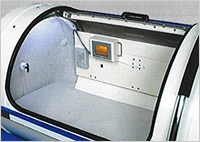 PLC 制御(マイコン)によってきめ細かく気圧・加圧スピード・時間を設定できます。また、コントローラーのみならずカプセル内にもタッチパネルのモニターが装備され、気圧・残時間・温度などの確認と使用中の設定変更が内部からでも可能です。
